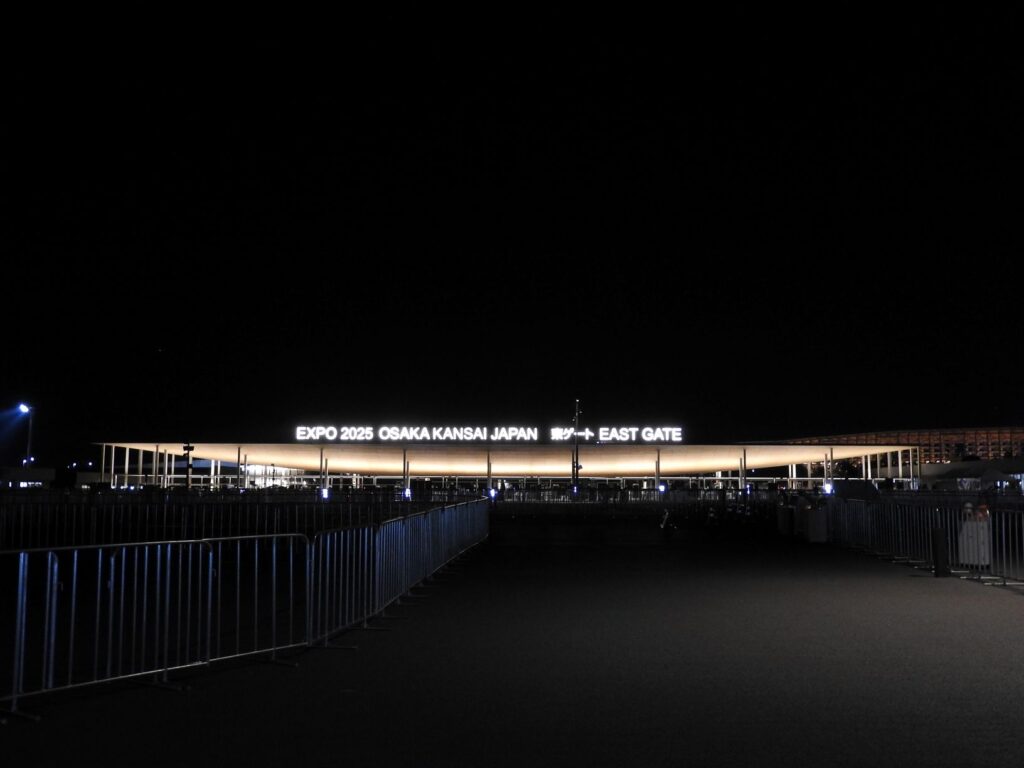 他にもたくさんの立派なパビリオンがあったが、私なりの楽しみ方で満喫しました。夜の入場ゲートもすごくシンプルで感動しました。な、なんとこの日、私の万歩計は29,409歩を示したのでした!